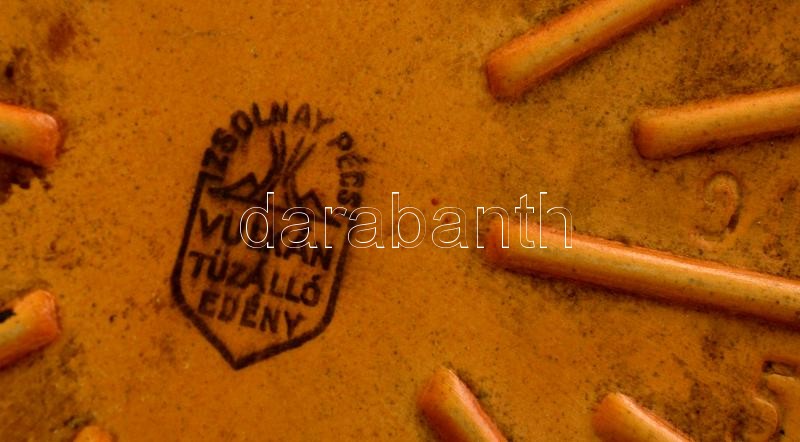 Leírás: Zsolnay Vulkán tűzálló tál, jelzett, kopott, 31×19 cm