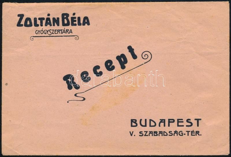 Leírás: Zoltán Béla gyógyszertára, receptboríték
