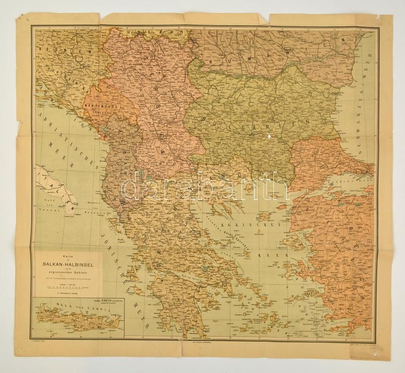 cca 1917 A Balkán-félsziget politikai-katonai térképe, a Bukaresti és Konstatinpolyi békék után. A hajtások-mentén kis szakadásokkal, 75x64 cm./ cca 1917 Political-military map of Balkan Peninsula after the Bucharest and Istanbul Treaties. With some tears