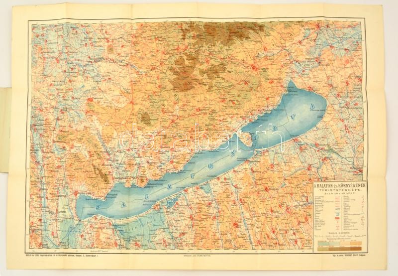Leírás: cca 1920 A Balaton és környékének turistatérképe, kiadja Kózol Antal Budapest, 71x52 cm