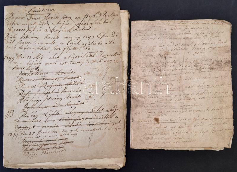 cca 1790-1820 Veszprémi kovács céhhel kapcsolatos iratok. Kovács céh esküjének szövege, szabaduló inasok lajstroma több évből is, valamint céh szabályzat. és egyéb iratok. Érdekes anyag