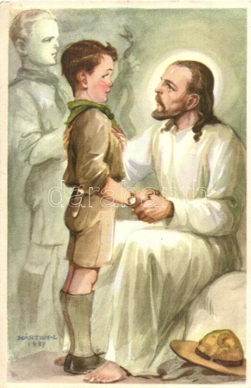 Leírás: A cserkész feltétlenül igazat mond. Cserkész levelezőlapok kiadóhivatala / Hungarian boy scout postcard s: Márton L. (EK)