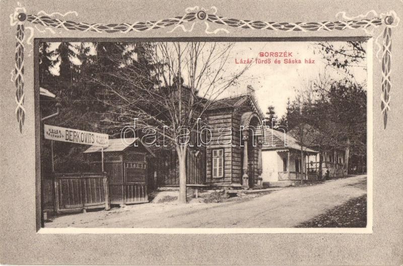 Leírás: Borszék, Borsec; Lázár fürdő, Sáska ház, Berkovits Koser vendéglője / spa, Jewish kosher guest house, restaurant and hotel. Art Nouveau