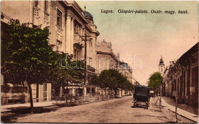 Lugos, Lugoj; Gáspári palota, Osztrák-magyar bank / palace, bank (EK) https://www.darabanth.com/hu/299-Gyorsarveres/299.0/Kepeslapok/Erdely~500008/Lugos-Lugoj-Gaspari-palota-Osztrak-magyar-bank-palace-bank-EK~II1603700