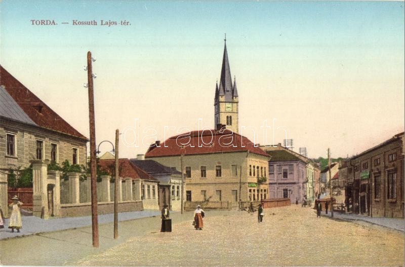 Torda, Turda; Kossuth Lajos tér, templom / square, church https://www.darabanth.com/hu/299-Gyorsarveres/299.0/Kepeslapok/Erdely~500008/Torda-Turda-Kossuth-Lajos-ter-templom-square-church~II1600814