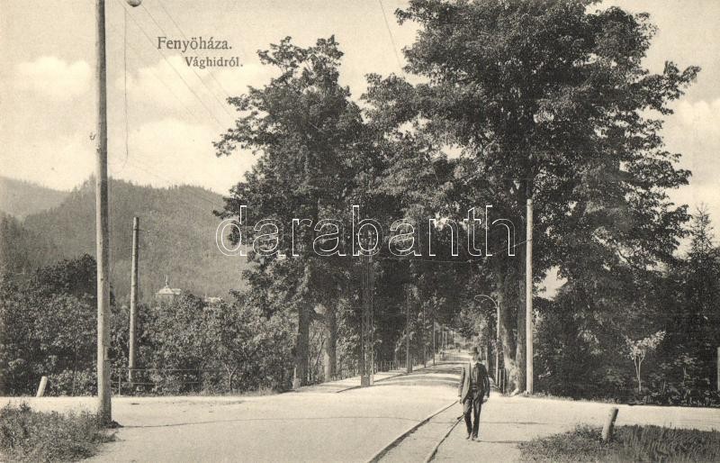 Leírás: Fenyőháza, Lubochna; utcakép a Vághídról, Jahn Nándor kiadása / street view from the bridge