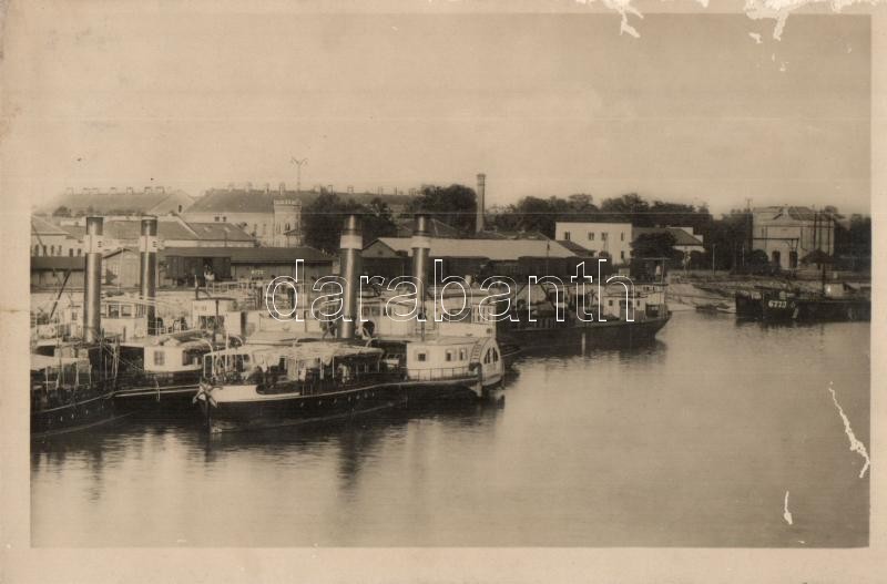 Komárom, Komárno; Dunarészlet a kikötővel, gőzhajók / Cast' Dunaj... https://www.darabanth.com/hu/299-Gyorsarveres/299.0/Kepeslapok/Felvidek~500009/Komarom-Komarno-Dunareszlet-a-kikotovel-gozhajok-Cast-Dunaja-s-pristavom-port-steam~II1602970