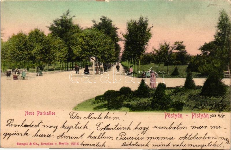 Leírás: Pöstyén, Piestany; Neue Parkallee / Új park / park (EK)