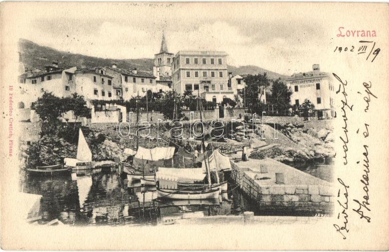 Leírás: Lovran, Laurana; port view with ships, Hotel and restaurant Miramar