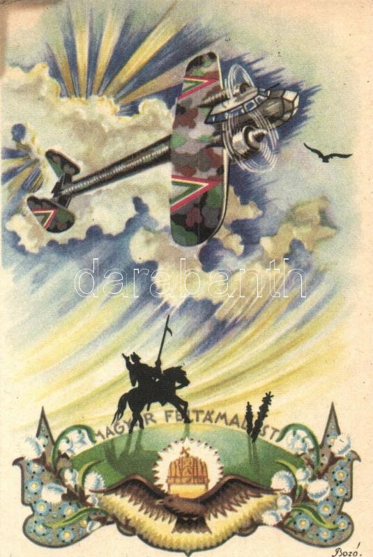 Leírás: 4 db RÉGI Bozó irredenta üdvözlőlap / 4 pre-1945 Bozó signed Hungarian irredenta greeting art postcards
