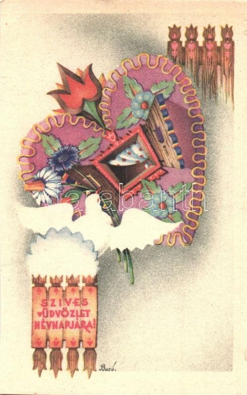 Leírás: 4 db RÉGI Bozó irredenta üdvözlőlap / 4 pre-1945 Bozó signed Hungarian irredenta greeting art postcards