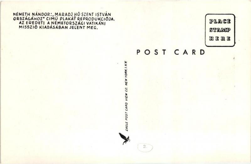 Hiszek Magyarország Feltámadásában. Németh Nándor: Maradj hű Szent István Országához című plakát reprodukciója képeslapon / Hungarian irredenta postcard s: Németh N.