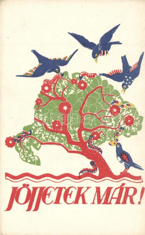 Leírás: 'Jöjjetek már!' kiadja a 'Szózat' Magyarország Területi Épségének Védelmi Ligája / Hungarian irredenta art postcard