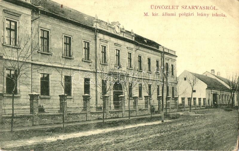 4 db RÉGI magyar városképes lap iskolákkal: Pápa, Salgótarján csendőriskola, Bonyhád, Szarvas (W. L. Bp. 1415.) / 4 pre-1945 Hungarian town-view postcards with schools
