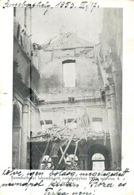 1945 Szombathely, Lebombázott székesegyház romjai, az orgona (b) https://www.darabanth.com/hu/299-Gyorsarveres/299.0/Kepeslapok/Magyarorszag~500007/1945-Szombathely-Lebombazott-szekesegyhaz-romjai-az-orgona-b~II1598492