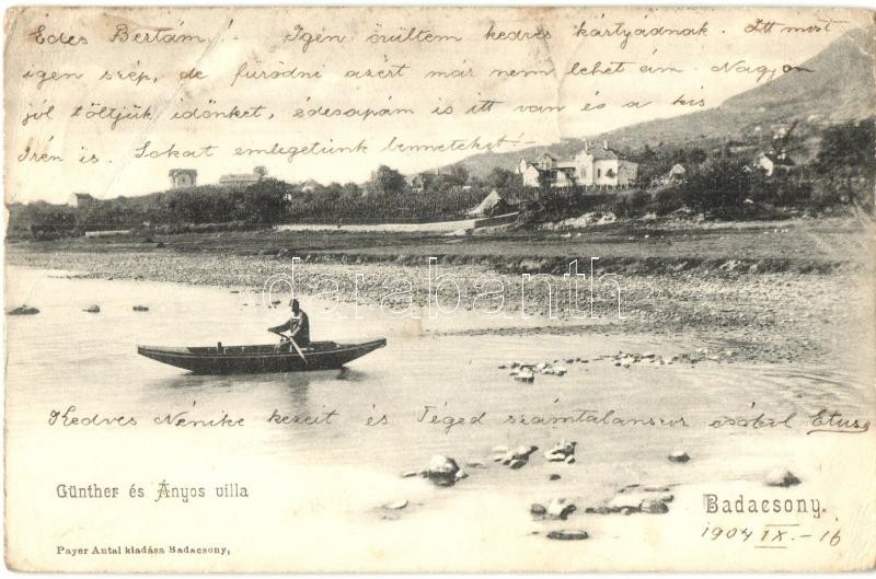 Badacsony, Günther és Ányos villa, Payer Antal kiadása (EB) https://www.darabanth.com/hu/299-Gyorsarveres/299.0/Kepeslapok/Magyarorszag~500007/Badacsony-Gunther-es-Anyos-villa-Payer-Antal-kiadasa-EB~II1601950