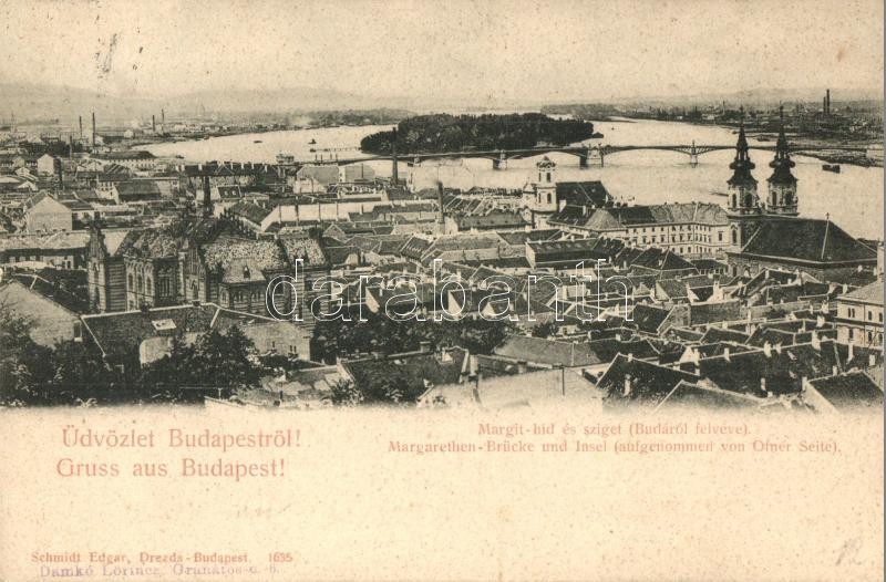Leírás: Budapest I. Margit híd és sziget Budáról felvéve, Schmidt Edgar kiadása (EK)