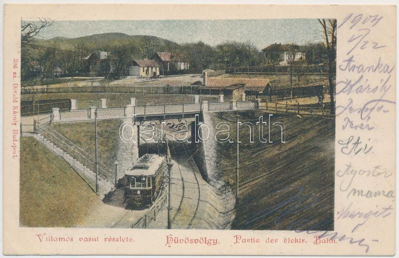 Leírás: Budapest II. Hűvösvölgy, villamos vasút részlete; Divald Károly 306. sz. (EK)