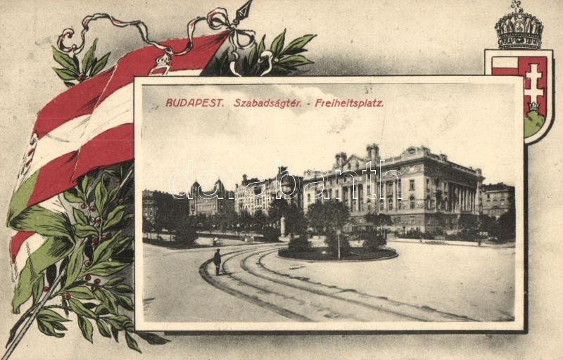 Budapest V. Szabadság tér, Magyar zászlós és címeres keret https://www.darabanth.com/hu/299-Gyorsarveres/299.0/Kepeslapok/Magyarorszag~500007/Budapest-V-Szabadsag-ter-Magyar-zaszlos-es-cimeres-keret~II1601326