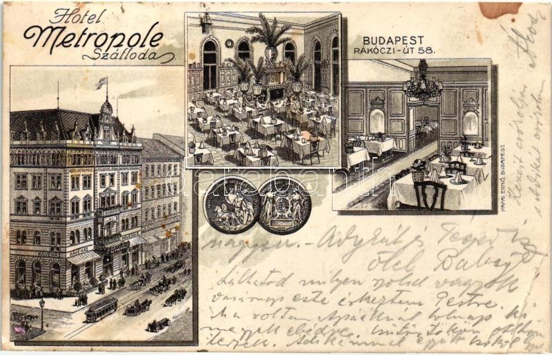 Budapest VII. Rákóczi út 58. Hotel Metropole szálloda reklámlapja, bel... https://www.darabanth.com/hu/299-Gyorsarveres/299.0/Kepeslapok/Magyarorszag~500007/Budapest-VII-Rakoczi-ut-58-Hotel-Metropole-szalloda-reklamlapja-belsok-villamos-Papai-Er~II1604236
