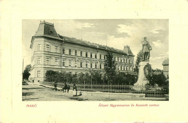 Makó, Állami főgimnázium, Kossuth szobor, W. L. Bp. 4121. (kis szakadá... https://www.darabanth.com/hu/299-Gyorsarveres/299.0/Kepeslapok/Magyarorszag~500007/Mako-Allami-fogimnazium-Kossuth-szobor-W-L-Bp-4121-kis-szakadas-small-tear~II1603271