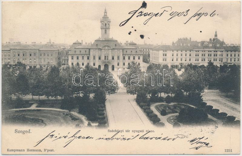 Szeged, Széchenyi tér nyugati része, Kampmann Hermann kiadása (EK) https://www.darabanth.com/hu/299-Gyorsarveres/299.0/Kepeslapok/Magyarorszag~500007/Szeged-Szechenyi-ter-nyugati-resze-Kampmann-Hermann-kiadasa-EK~II1342760