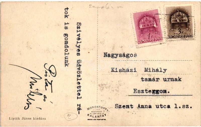 Leírás: Tállya, Római katolikus elemi iskola, Hősi emlék, Lipták János kiadása (EK)
