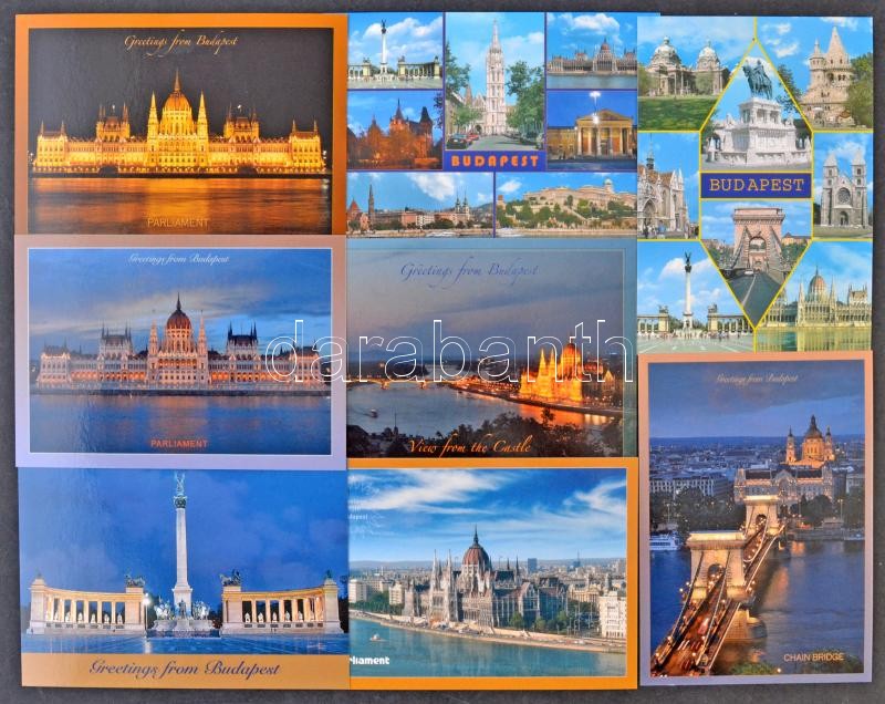 158 db MODERN budapesti városképeslap; használatlan ismétlődő példányok nagy alakú lapokkal is / 158 modern Budapest town-view postcards; unused repeating pieces with big sized cards