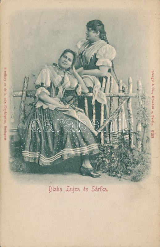 Blaha Lujza és Sárika Emb., Strelisky fényképész https://www.darabanth.com/hu/299-Gyorsarveres/299.0/Kepeslapok/Szinesz~500088/Blaha-Lujza-es-Sarika-Emb-Strelisky-fenykepesz~II940516