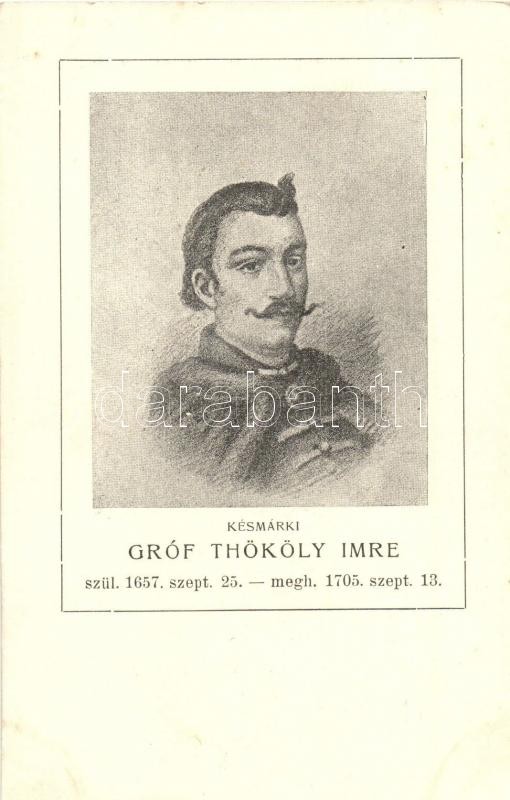 Késmárki gróf Thököly Imre https://www.darabanth.com/hu/299-Gyorsarveres/299.0/Kepeslapok/Uralkodo-Politikus~500092/Kesmarki-grof-Thokoly-Imre~II1599490