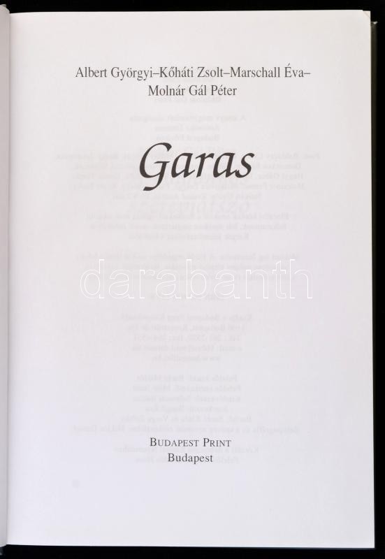 Leírás: Albert Györgyi, Kőháti Zsolt, Marschall Éva, Molnár Gál Péter: Garas. Bp., é.n., Budapest Print. Kiadói kartonált papírkötés.