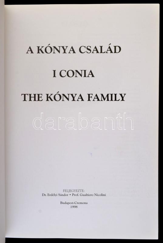 Dr. Erdélyi Sándor-Prof. Gualtiero Nicolini: A Kónya család. Budapest-Cremona, 1998, Media-Press. Kiadói kartonált papírkötésben. Olasz és magyar nyelven. Kónya Lajos hegedűkészítő mester által dedikált példány! Pármai könyvfesztiválon díjazott könyv.
