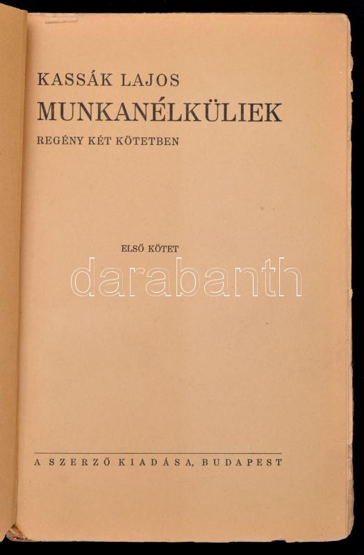 Kassák Lajos: Munkanélküliek. I. kötet. Bp., (1932) Szerzői kiadás, He...