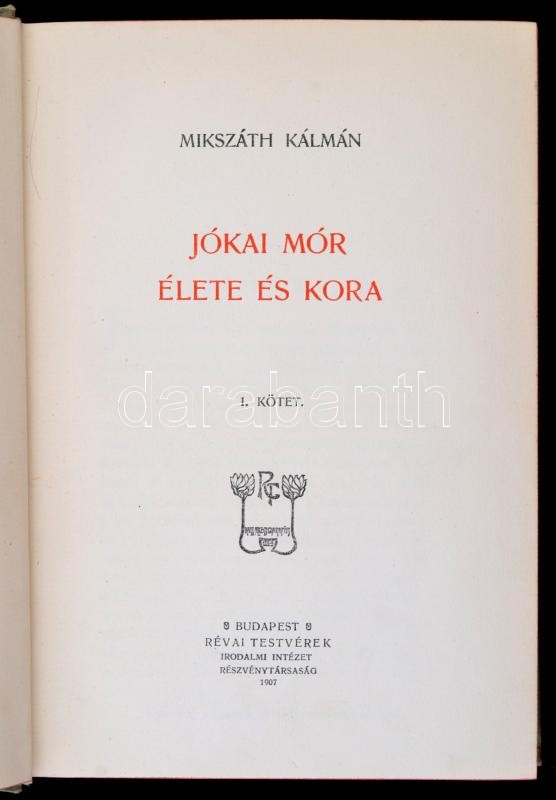 Mikszáth Kálmán: Jókai Mór élete és kora I. kötet. Mikszáth Kálmán munkái. Bp., 1907, Révai Testvérek Irodalmi Intézet Rt. Első kiadás. Kiadói illusztrált szecessziós egészvászon, Gottermayer N.-féle kötésben. Dr. Hirschler József (1874-1936) katolikus plébános, kanonok, pápai prelátus, művészeti író ex libris-szével. Jó állapotban.