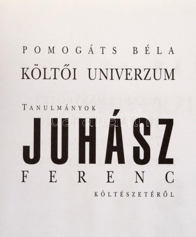 Pomogáts Béla: Költői Univerzum. Tanulmányok Juhász Ferenc költészetér... https://www.darabanth.com/hu/299-Gyorsarveres/299.0/Konyvek/Konyvek-Egyeb-ritkasagok~200016/Pomogats-Bela-Koltoi-Univerzum-Tanulmanyok-Juhasz-Ferenc-kolteszeterol-Bp-2003-Litte~II1599599
