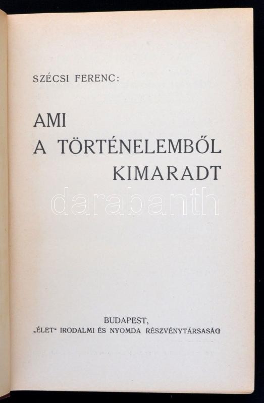 Leírás: Szécsi Ferenc: Ami a történelemből kimaradt. Bp., é.n, "Élet" Irodalmi és Nyomdai Rt. Kiadói kissé kopottas aranyozott egészvászon kötésben.