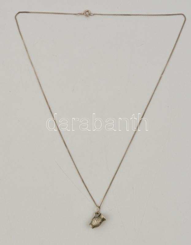 Leírás: Ezüst(Ag) lánc korsó alakú függővel, jelzett, h: 44 cm, nettó: 4,9 g