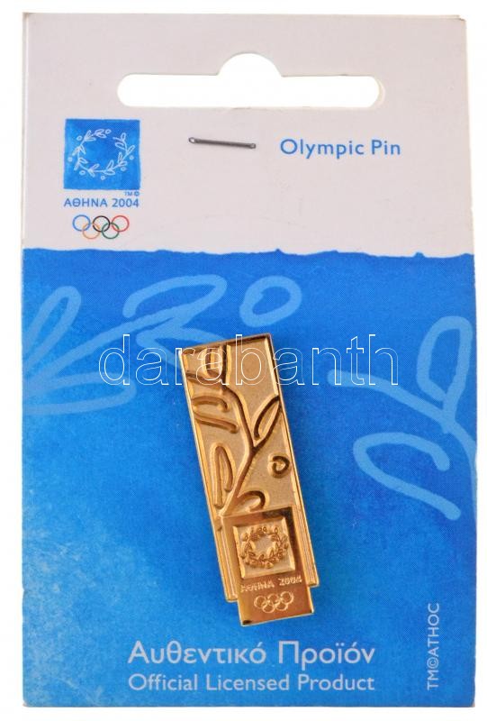 2004. "Athén" aranyozott fém olimpiai jelvény, eredeti csomagolással (10x31mm) T:1-,2