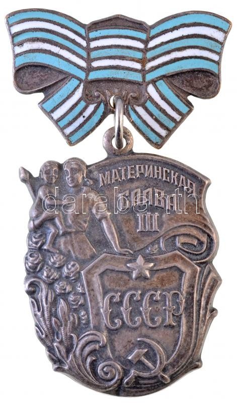 Szovjetunió ~1960-1970. "Dicső Anya III. osztálya" jelzetlen Ag kitüntetés zománcozott mellszalaggal, hátoldalán sorszámozott T:2