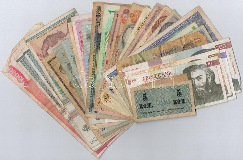 30db-os vegyes külföldi bankjegy tétel, közte Csehszlovákia, Jugoszlávia, Lengyelország, Orosz Birodalom, Románia, Szlovénia T:III,III- 30pcs of various banknotes, including Czechoslovakia, Yugoslavia, Poland, Russia, Romania, Slovenia C:F,VG
