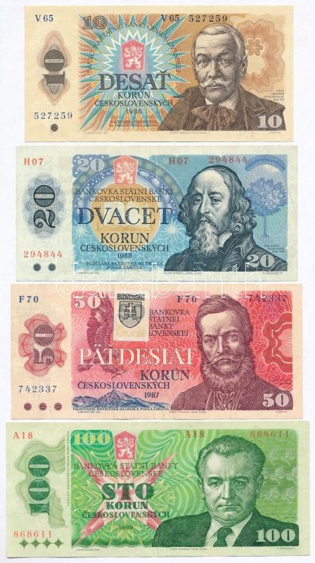 Czechoslovakia 1986. 10 Korun + 1987. 50 Korun + 1988. 20 Korun + 1989. 100 Korun C:F