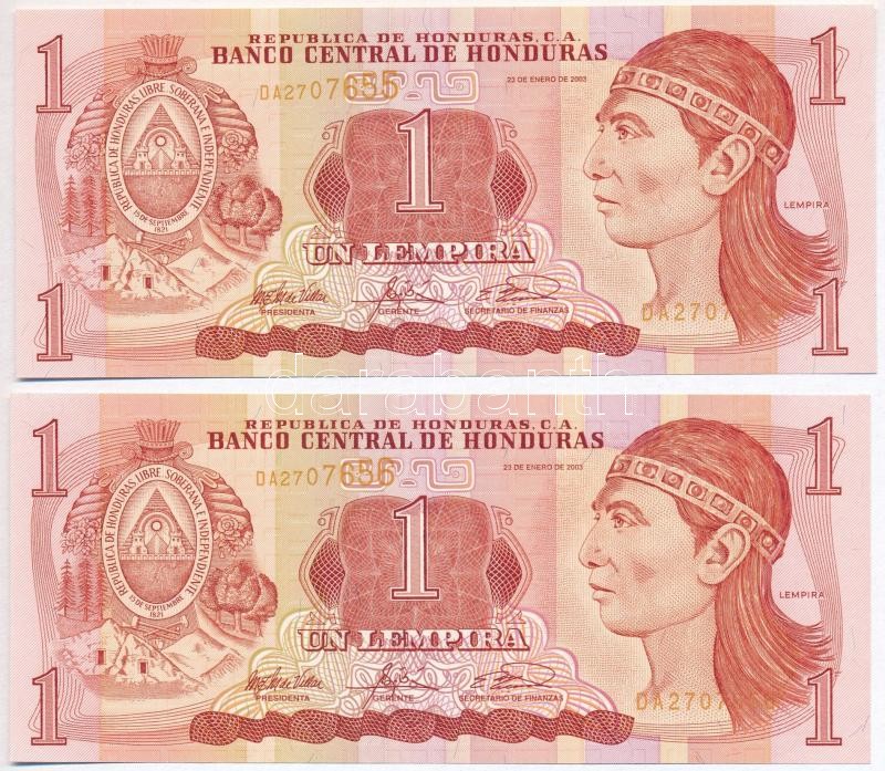 Honduras 2003. 1 Lempira (2x) sequential serials C:UNC