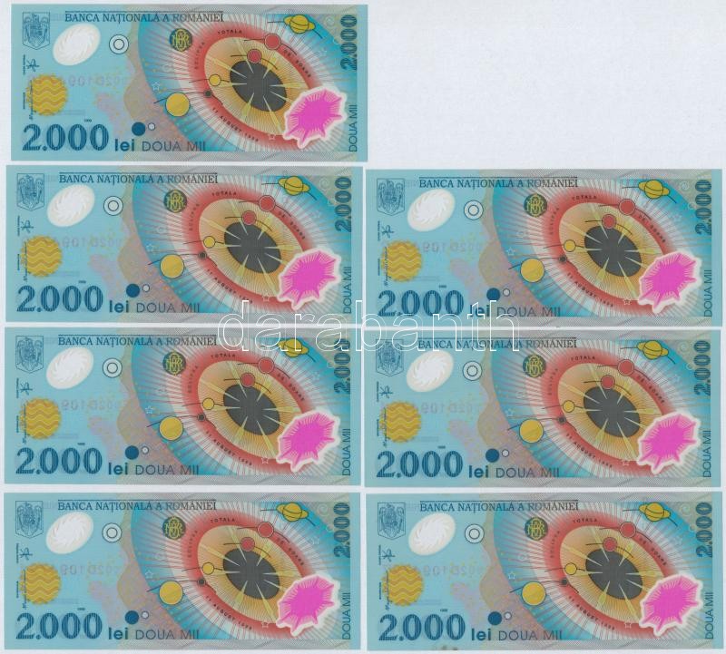 Romania 1999. 2000 Lei (7x) with 5pcs of sequential serials and 2pcs of close serials C:UNC