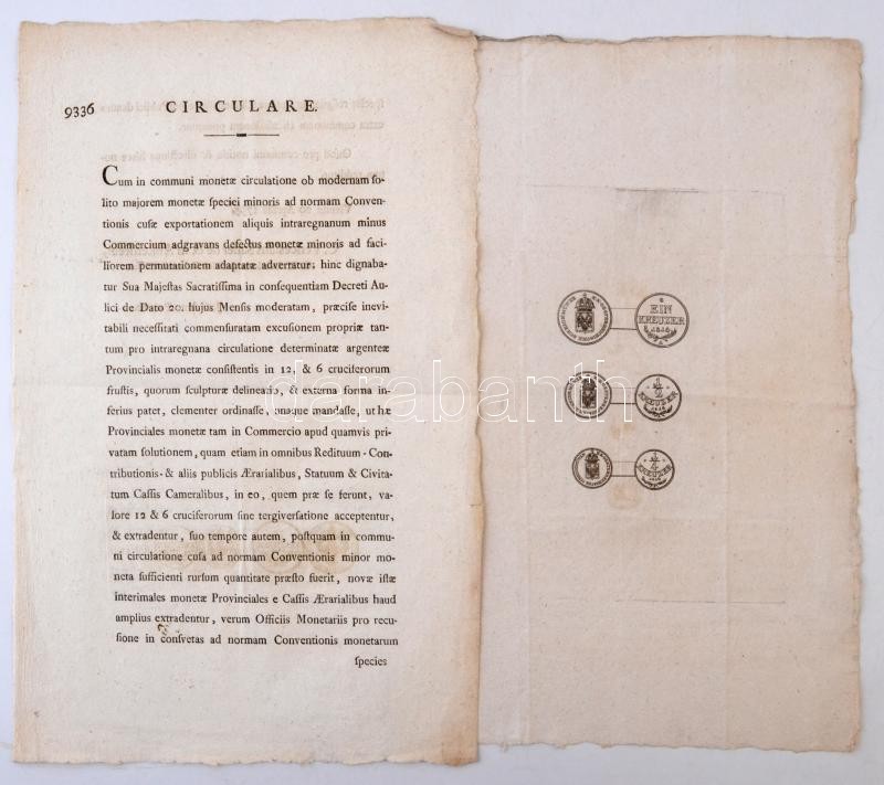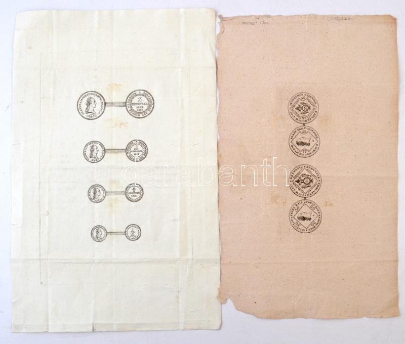 Austria 1795A 12 Kreuzer Ag "Franz II" (4,15g) + Hungary 1795B 12 Kreuzer Ag "Franz I" (4,33g) + 4 pages of announcements about newly issued Kreuzers with pictures of the coins and text in latin C:VF