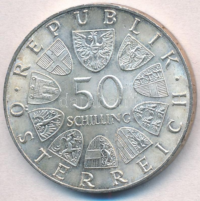 Ausztria 1966. 50Sch Ag "150 éves az Osztrák Nemzeti Bank" T:1-,2 Austria 1966. 50 Schilling Ag "150th Anniversary of the National Bank" C:AU,XF Krause KM#2900
