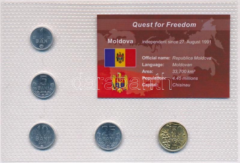 Moldova 2000-2006. 1 Ban - 50 Bani (5xdiff) "Quest for Freedom" series, coin set in plastic case C:BU