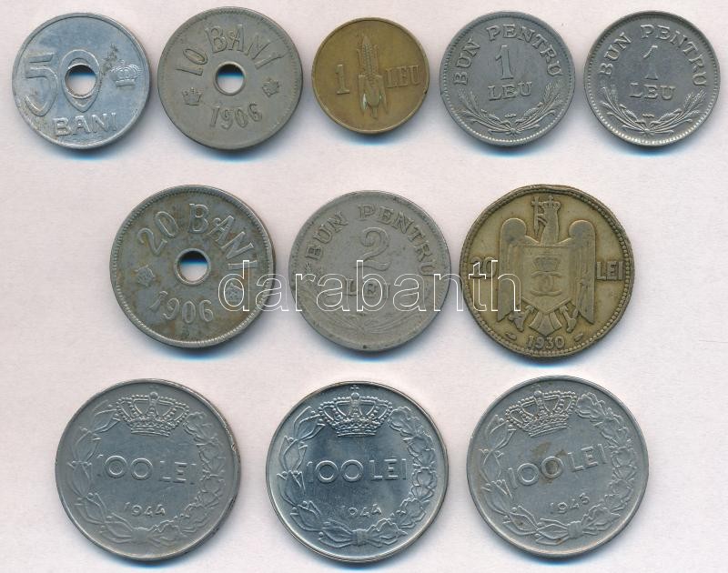 Romania 1906-1944. 10 Bani -... https://www.darabanth.com/hu/299-Gyorsarveres/299.0/Numizmatika/Kulfoldi-fem-es-ezustpenzek~400013/Romania-1906-1944-10b-100L-11x-T2-2---Romania-1906-1944-10-Bani--100-Lei-11x-CXF-VF~II1600101