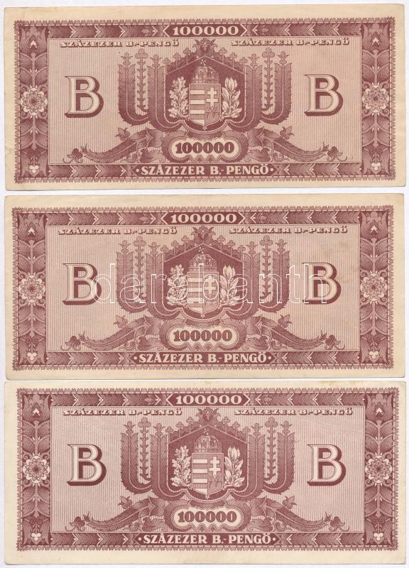 1946. 100.000BP (3x) T:I--II- https://www.darabanth.com/hu/299-Gyorsarveres/299.0/Numizmatika/Magyar-bankjegyek~400007/1946-100000BP-3x-TI-II-~II1602029