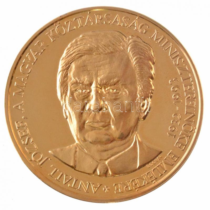 Bognár György (1944-) 1993. "Antall József, A Magyar Köztársaság miniszterelnöke 1932-1993 / Hazádnak rendületlenül légy híve, oh magyar" aranyozott Ag emlékérem (30,52g/0.925/42,5mm) T:1-,2