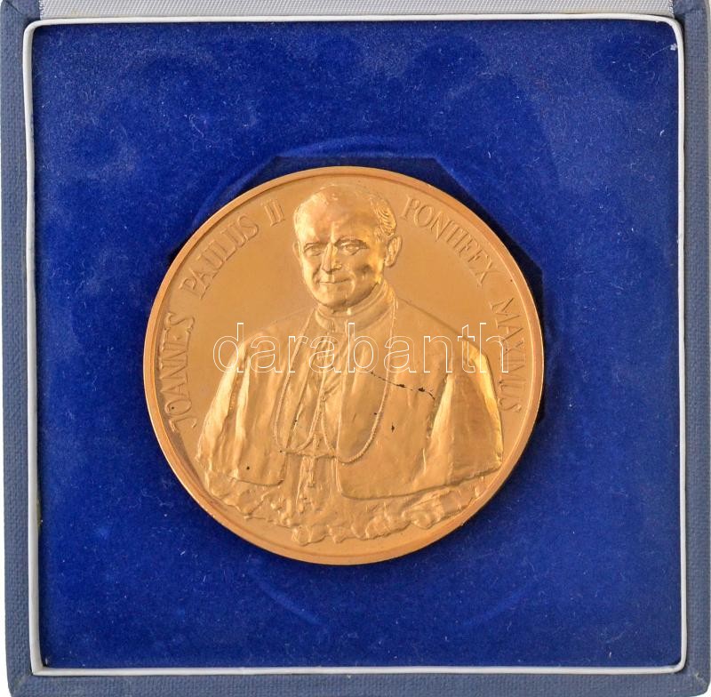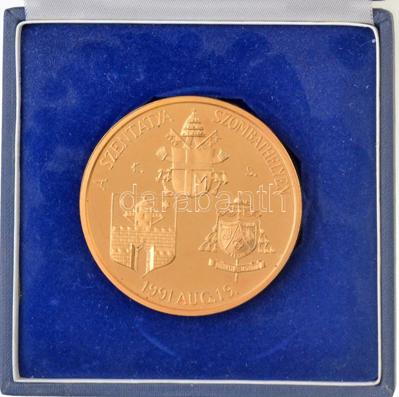 Kiss Sándor (1925-1999) 1991. "II. János Pál pápa / A Szentatya Szombathelyen 1991. aug. 19." aranyozott Br emlékérem nem hozzáillő tokban (65mm) T:2(PP) karc, ujjlenyomat